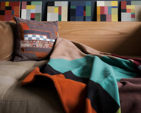 Based on original small-scale paintings by Steven Johanknecht, created at home during the pandemic lockdown, these artworks were repeated and repositioned to form patterns that evoke and pay homage to traditional Scandinavian design.
