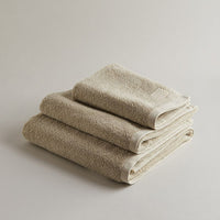 A warm neutral charm Isabella Beige evokes the soft patina of sun-faded stone and linen left to dry in the Mediterranean breeze. Our Spugna towels are loomed in Italy from 100% premium long-staple cotton to a rich 530grm weight, offering exceptional absorbency and a dense, comforting texture. Finished with generous proportions and silky terry loops, each piece is dyed and stone-washed for a weathered finish that feels lived-in from first use. The hand-finished details and subtle irregularities are a mark of its artisan touch elegant, enduring, and designed for everyday rituals.